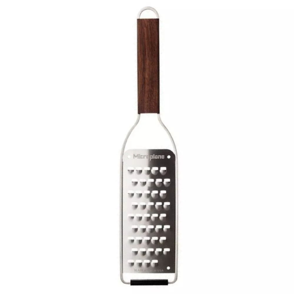 La grattugia ultra spessa della serie Master di Microplane è pensata per chi cerca risultati eccellenti con il minimo sforzo. Grazie alla sua ampia superficie di taglio e alla lama foto-incisa in acciaio inox – made in USA – permette di ottenere bastoncini perfetti da un’ampia varietà di ingredienti: dalle verdure ai formaggi, dal cioccolato alle mele. Il manico in legno di noce del Kentucky dona eleganza e praticità, rendendola uno strumento indispensabile in cucina.
