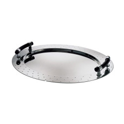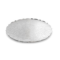Vassoio rotondo in acciaio inossidabile 18/10 lucido con decoro a rilievo.