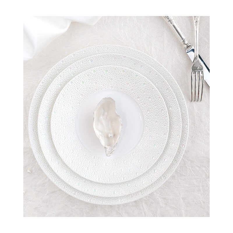 I piatti e i piattini della collezione Ecume Perle presentano una delicata finitura madreperla, che aggiunge un'iridescenza sottile permettendo al decoro di risplendere dolcemente. Questa finitura è ideale sia come pezzi di servizio sia per essere abbinata agli articoli della gamma Ecume bianca. Ideale per coloro che apprezzano il design moderno e l'arte del convivio, la collezione Ecume Perle fornisce lo sfondo perfetto per pasti eleganti e incontri speciali, rendendo ogni apparecchiatura un'affermazione di stile e raffinatezza. Sku: 1975/20516 Materiale: Porcellana Dimensione: 24 cm Realizzato a Limoges, Francia