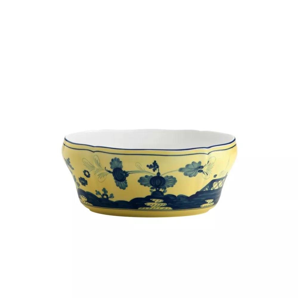 Aggiungi un tocco di eleganza alla tua tavola con l'insalatiera ovale da 25 cm della collezione Oriente Italiano di Richard Ginori, realizzata in porcellana decorata a mano.
