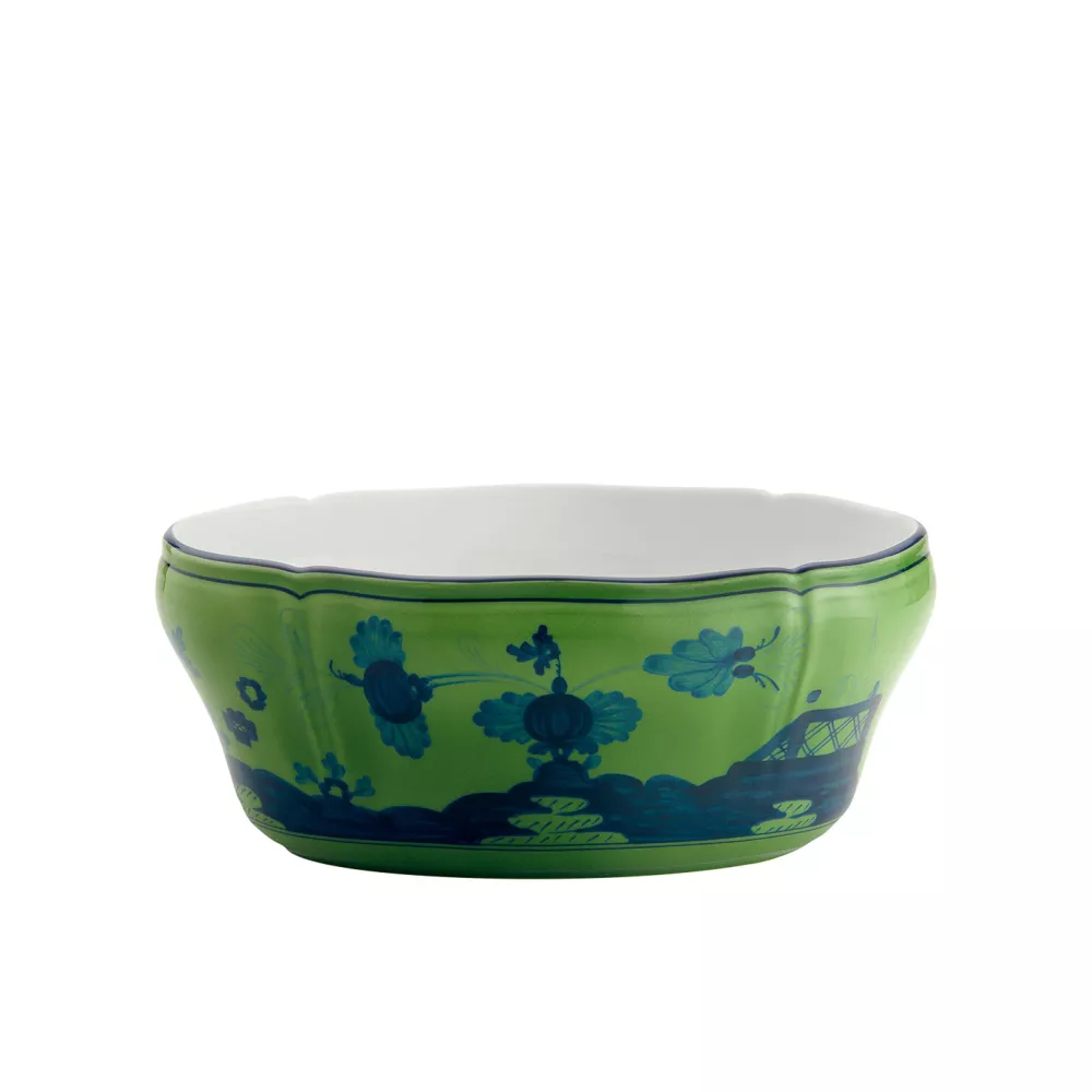 Aggiungi un tocco di eleganza alla tua tavola con l'insalatiera ovale da 25 cm della collezione Oriente Italiano di Richard Ginori, realizzata in porcellana decorata a mano.