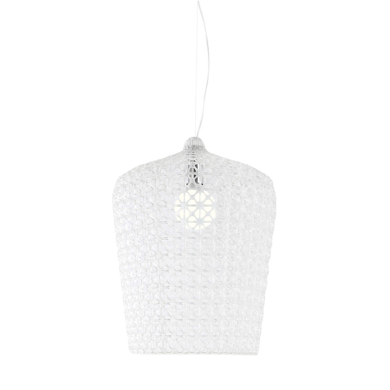 LAMPADA A SOSPENSIONE KABUKI, 9175 - KARTELL Kabuki - Lampada a sospensione è una lampada tecnologicamente avanzata e altamente sofisticata. Infatti, la Kabuki - Lampada a sospensione è creata utilizzando la tecnica dell'iniezione, che consente di realizzare una struttura a trama che assomiglia molto al vero pizzo. Questa lampada di design è il risultato di una raffinata lavorazione industriale della plastica; la tecnica utilizzata e implementata da robot perfettamente programmati fa sì che la Kabuki - Lampada a sospensione sembri davvero artigianale. Nonostante ciò, la Kabuki - Lampada a sospensione, come molte altre lampade prodotte da Kartell utilizzando questa tecnica, mostra ed esprime la natura all'avanguardia dell'azienda e la sua estrema capacità di applicare la tecnologia al design, dando vita a prodotti affascinanti e di alta qualità. Materiale Struttura: Tecnopolimero Termoplastico Trasparente O Colorato In Massa Ignifugo: Non Ignifugo Uso: Indoor Altezza: 73÷268 cm Diametro: 50 cm