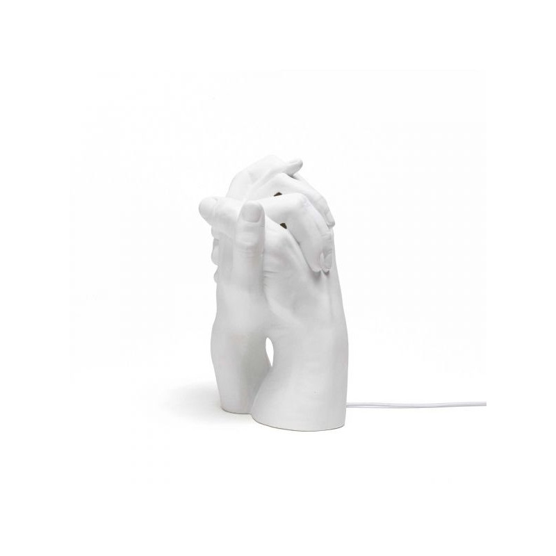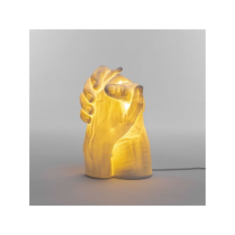Con le nostre mani possiamo toccare, giocare, costruire disegnare ed esprimere noi stessi. Queste mani rappresentano un legame solidale di puro amore; la luce che emerge quando siamo insieme. Lampada di porcellana Dimensioni cm 21 x 12 h. 40,5 | 8,3” x 4.7” h. 15,9” Input 230 V~ 50Hz - E14 Lampadina a led inclusa - 3000 K / 6 W / 550 lumen Lunghezza del cavo: 8.2 ft | 2,5 m