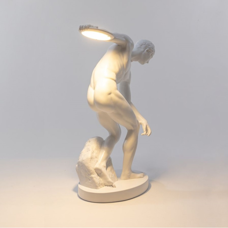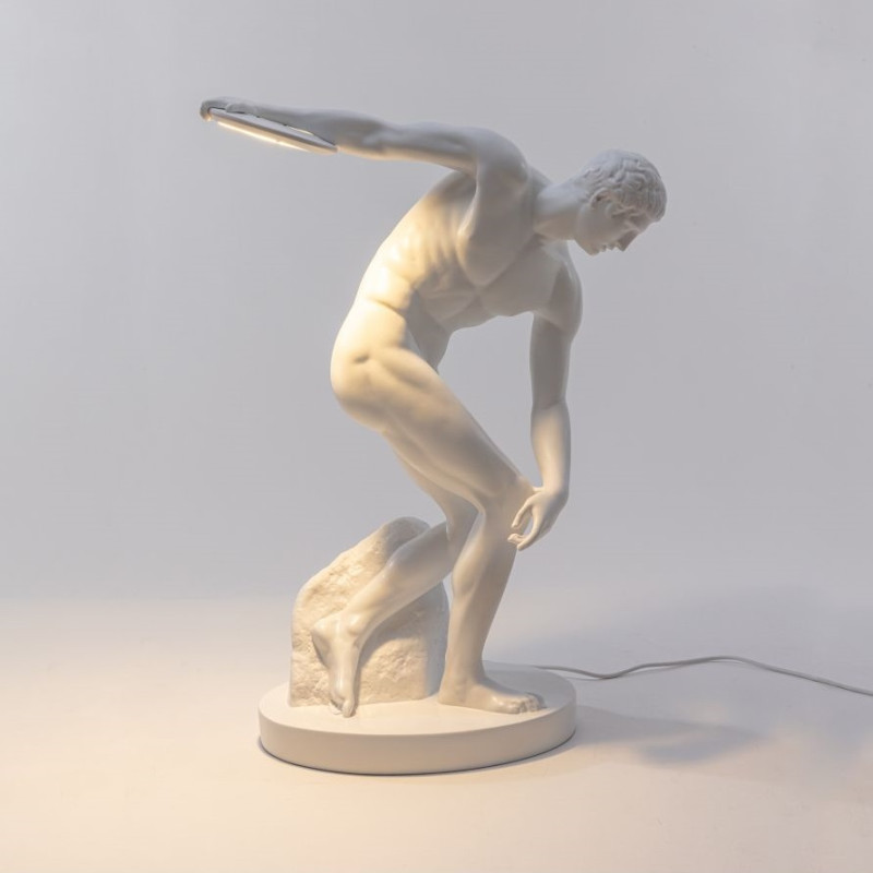 LAMPADA DISCOBOLUX, 14807 - SELETTI La celebre scultura greca diventa una lampada, la statua rappresenta un atleta pochi istanti prima del lancio del discobolo e Seletti ha voluto donare luce ad un grande classico. Un connubio perfetto tra storia e contemporaneità. Lampada a Led Dimmerabile Design: Uto Balmoral Materiale: Resin Misure: 34x19 x H 51 cm