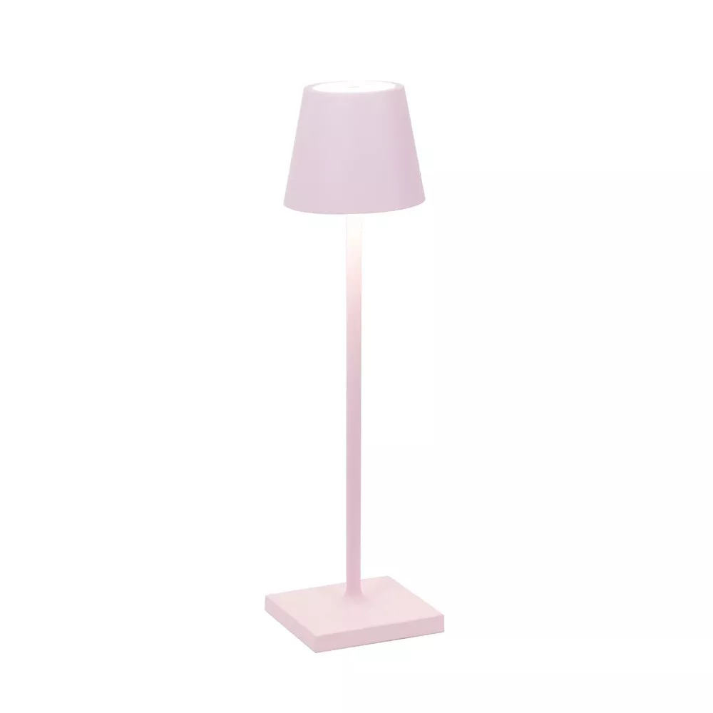 LAMPADA DA TAVOLO, POLDINA MICRO, ZAFFERANO SRL Lampada da tavolo ricaricabile, base di ricarica a contatto inclusa, corpo realizzato in alluminio verniciato, diffusore in policarbonato e illuminazione a LED. Il pulsante di accensione è touch ed è posto sulla sommità del diffusore; tramite lo stesso pulsante si può regolare la temperatura di colore della luce: 2200, 2700 o 3000K e l’intensità del flusso luminoso. La lampada ha inoltre un grado di protezione IP65 che rende la lampada "poldina" adatta sia all’uso interno che esterno. Alimentatore non incluso nella versione micro. Pacco batteria al litio ricaricabile e sostituibile (circa 3-4 hr per la ricarica a 1A) Corpo in alluminio pressofuso, diffusore in policarbonato Adatta all'uso da esterno (IP65) La durata della batteria è garantita per 7/8 ore alla massima potenza Diametro: 7 cm; H 27,5 cm; Base: 7x7 cm