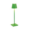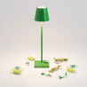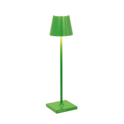 LAMPADA DA TAVOLO, POLDINA MICRO, ZAFFERANO SRL Lampada da tavolo ricaricabile, base di ricarica a contatto inclusa, corpo realizzato in alluminio verniciato, diffusore in policarbonato e illuminazione a LED. Il pulsante di accensione è touch ed è posto sulla sommità del diffusore; tramite lo stesso pulsante si può regolare la temperatura di colore della luce: 2200, 2700 o 3000K e l’intensità del flusso luminoso. La lampada ha inoltre un grado di protezione IP65 che rende la lampada "poldina" adatta sia all’uso interno che esterno. Alimentatore non incluso nella versione micro. Pacco batteria al litio ricaricabile e sostituibile (circa 3-4 hr per la ricarica a 1A) Corpo in alluminio pressofuso, diffusore in policarbonato Adatta all'uso da esterno (IP65) La durata della batteria è garantita per 7/8 ore alla massima potenza Diametro: 7 cm; H 27,5 cm; Base: 7x7 cm