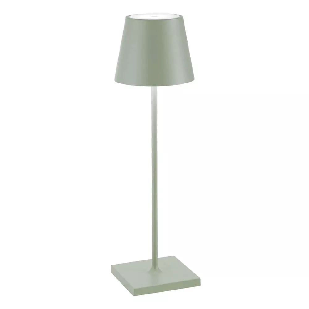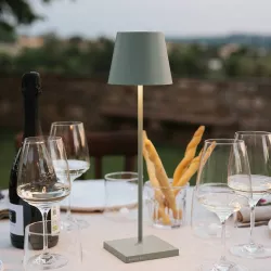 Poldina Pro è una lampada da tavolo portatile e ricaricabile, ideale per ambienti interni ed esterni. Dotata di un controllo touch sulla testa per accensione, regolazione dell'intensità luminosa e selezione della temperatura colore (2700K-3000K). Realizzata in alluminio pressofuso con diffusore in policarbonato, è resistente e pratica, grazie alla base di ricarica a contatto inclusa.