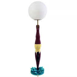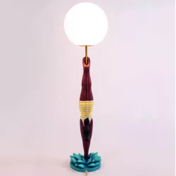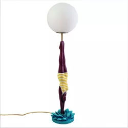 Lampada da tavolo dimmerabile Diver Seletti La lampada Lady Diver è ispirata al celebre tatuaggio della tuffatrice degli anni '40. Questa creazione unisce il background professionale e formativo del designer, dando vita a una lampada affascinante. Il tatuaggio, tradizionalmente un decoro bidimensionale, viene qui trasformato in un oggetto tridimensionale. Design: Simone Falcetta Materiale: Resina/ Metallo/Vetro Misure: Ø 19 cm x h. 94 cm | 7,4'' x h.37''