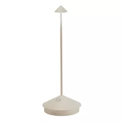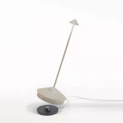 Lampada da tavolo ricaricabile e dimmerabile, con controllo touch, dotata di una innovativa base di ricarica a contatto. Struttura in alluminio pressofuso, diffusore in policarbonato; sorgente luminosa a LED. La lampada è anche dotata di una funzione di selezione della temperatura del colore della luce tra 2200, 2700 o 3000 Kelvin. La classificazione IP IP54 rende la lampada ideale per l'uso interno ed esterno. La batteria al litio offre 12 ore di autonomia con una singola carica.