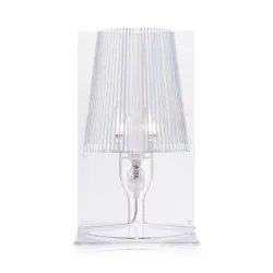 Lampada Take, progettata da Ferruccio Laviani, rivisita l'iconica lampada da comodino attraverso la tecnologia innovativa di Kartell, trasformandola in un prodotto industriale. Realizzata mediante il processo di stampaggio ad iniezione, la lampada è realizzata in policarbonato trasparente o coprente in diverse tonalità cromatiche. La sua forma nasce dall'unione di due parti speculari: due lastre rettangolari piatte che, quando si uniscono, creano la forma e il volume della "semi-lampada". La plissettatura interna del diffusore aggiunge un tocco di raffinatezza, creando un gioco di riflessi quando è illuminata. Il suo eccellente rapporto qualità-prezzo e l'imballaggio pensato per un prodotto "cash & carry" rendono Take un'idea regalo perfetta.