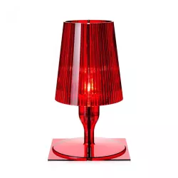 Lampada Take, progettata da Ferruccio Laviani, rivisita l'iconica lampada da comodino attraverso la tecnologia innovativa di Kartell, trasformandola in un prodotto industriale. Realizzata mediante il processo di stampaggio ad iniezione, la lampada è realizzata in policarbonato trasparente o coprente in diverse tonalità cromatiche. La sua forma nasce dall'unione di due parti speculari: due lastre rettangolari piatte che, quando si uniscono, creano la forma e il volume della "semi-lampada". La plissettatura interna del diffusore aggiunge un tocco di raffinatezza, creando un gioco di riflessi quando è illuminata. Il suo eccellente rapporto qualità-prezzo e l'imballaggio pensato per un prodotto "cash & carry" rendono Take un'idea regalo perfetta.