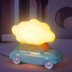 La lampada da tavolo Nuvola di Seletti, disegnata da Gabriele Picco, ti invita a fluttuare tra le nuvole con il suo design unico e creativo. La base, in porcellana azzurra, rappresenta una piccola auto ispirata alla Fiat 500, mentre la nuvola luminosa sopra di essa emana una luce calda e soffusa, creando un'atmosfera rilassante. Questa lampada è perfetta per aggiungere un tocco di fantasia e stile a qualsiasi stanza, combinando l'artigianato della porcellana con un'illuminazione d'effetto.
