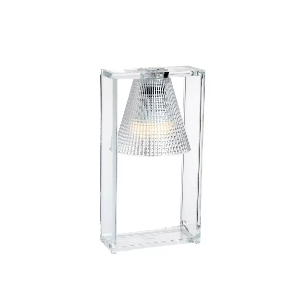 LIGHTAIR LAMPADA TAVOLO, 9135 - KARTELL La Lampada Light-Air è la variante da tavolo di una serie di lampade disponibili anche come sospensioni e applique. Essa presenta un design essenziale, moderno e razionale. La struttura di supporto è realizzata in tecnopolimero termoplastico trasparente o colorato in massa, mentre il diffusore è trasparente e rivestito in tessuto. Materiale Struttura: Tecnopolimero termoplastico Trasparente Diffusore: Tecnopolimero termoplastico trasparente rivestito in tessuto Dimensioni Larghezza: 17 cm Profondità: 7,4 cm Altezza: 32 cm Peso unitario: 1.1 kg