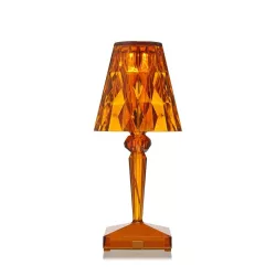 LAMPADA TAVOLO BATTERY, 9140 - KARTELL Design by: Ferruccio Laviani Battery è una lampada da tavolo iconica creata da Kartell e progettata da Ferruccio Laviani. Questo paralume compatto è realizzato in PMMA trasparente e rappresenta un vero simbolo di innovazione, poiché può essere completamente ricaricato quando collegato e ha una durata della batteria fino a 8 ore. Questa caratteristica permette di spostare facilmente la lampada da un luogo all'altro, rendendola perfetta per l'uso in ristoranti e caffè all'aperto. Battery presenta un paralume in tonalità di cristallo con una superficie prismatica che crea incantevoli giochi di luce. Materiale Struttura: Tecnopolimero termoplastico Trasparente Dimensioni Larghezza: 13 cm Profondità: 13 cm Altezza: 22 cm Peso unitario: 0,38 kg
