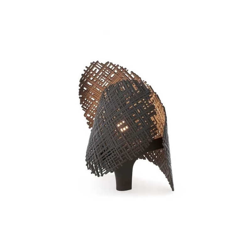 LAMPADA DA TAVOLO, TEA 9005 - KARTELL TEA è un oggetto astratto che ha un aspetto artigianale, rappresentando due mani che tengono tra di loro la luce e la fanno emergere attraverso una superficie irregolare. Questo crea un effetto di chiaroscuro, simile alle ombre proiettate su un muro. Una caratteristica particolarmente innovativa di TEA è la sua finitura tattile irregolare e porosa, che dona un aspetto naturale simile alla terracotta o al biscuit. La scelta di una gamma cromatica semplice serve a comunicare che anche attraverso il riciclo di materiali si possono creare oggetti di alta qualità e con un tocco poetico. TEA è realizzata utilizzando un tecnopolimero termoplastico riciclato. Dimensioni: 28 x H 32 cm Peso: 0,8 kg