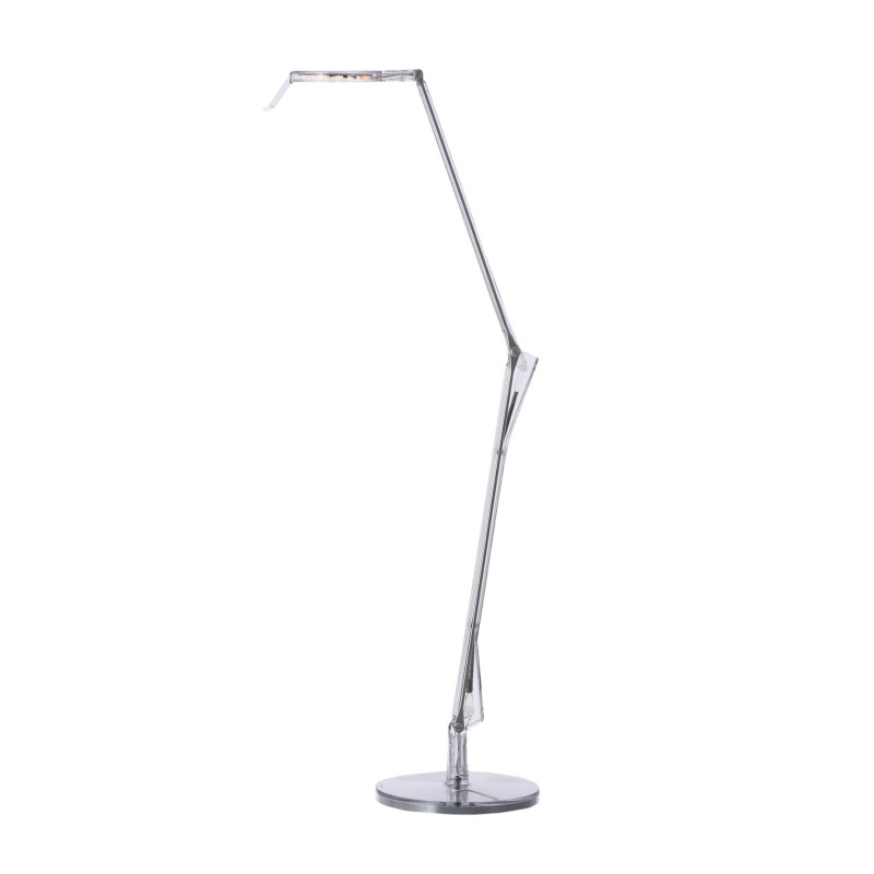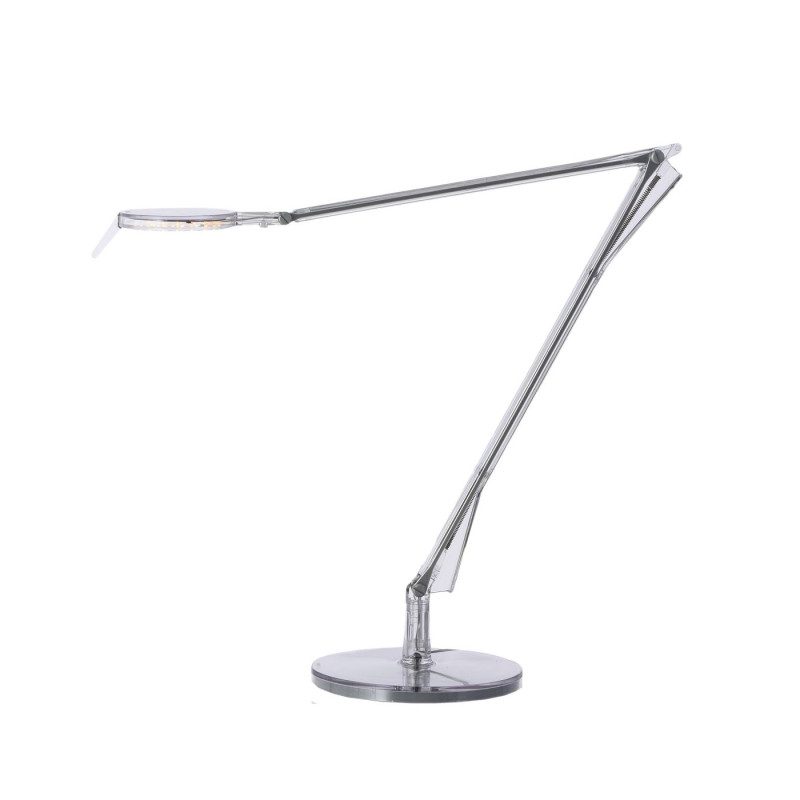 LAMPADA DA TAVOLO, ALEDIN TEC 9190 - KARTELL Aledin è una lampada da tavolo a LED disponibile in due diverse versioni, Tec e Dec, che si distinguono per il diffusore. Aledin Tec ha una testa piatta che consente di ottenere un fascio di luce diretto e orientabile grazie al movimento del diffusore stesso. È particolarmente adatta per un utilizzo in ufficio. D'altra parte, la versione Dec si contraddistingue per la decorazione sfaccettata del diffusore a cono. Il fascio di luce è più ampio e crea un'atmosfera più accogliente, rendendola ideale per un utilizzo in casa. Entrambi i modelli hanno bracci snodati in policarbonato, con due stecche in alluminio che fungono da conduttori. La lampada è di classe 3 e offre un'alta resa luminosa di circa 600lm con un consumo di energia di soli 5,6W, grazie ai LED di ultima generazione, garantendo un notevole risparmio energetico. Dimensioni Larghezza: 21 cm Altezza: 113 cm Peso: 3,4 kg