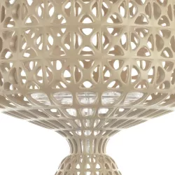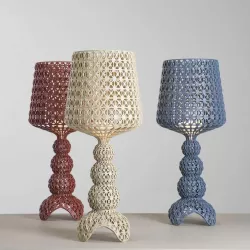 LAMPADA DA TAVOLO KABUKI, 9200 - KARTELL Versione mini della lampada in polimero termoplastico complesso dalla caratteristica superficie traforata da cui si diffonde la luce. Materiale Struttura: Tecnopolimero termoplastico colorato in massa Dimensioni Altezza: 70 cm Diametro: 30 cm Peso unitario: 1,5 kg