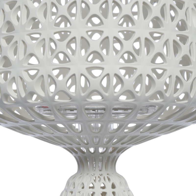 LAMPADA DA TAVOLO KABUKI, 9200 - KARTELL Versione mini della lampada in polimero termoplastico complesso dalla caratteristica superficie traforata da cui si diffonde la luce. Materiale Struttura: Tecnopolimero termoplastico colorato in massa Dimensioni Altezza: 70 cm Diametro: 30 cm Peso unitario: 1,5 kg