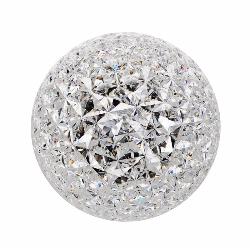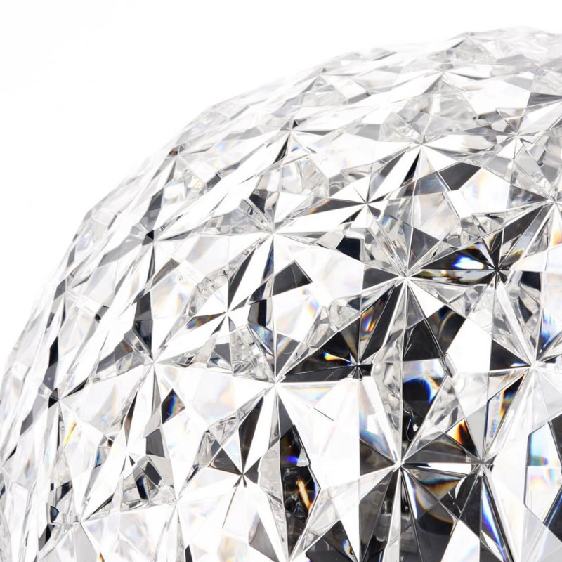 LAMPADA DA TAVOLO PLANET, 9385 - KARTELL La Kartell Planet è una serie completa di lampade che comprende sospensioni, lampade da tavolo basse e modelli con struttura in metallo. La caratteristica distintiva di queste lampade è la forma del diffusore, leggermente ovoidale, trasparente e con una superficie sfaccettata sia all'interno che all'esterno, creando un suggestivo gioco di riflessi luminosi. Materiale Struttura: Tecnopolimero termoplastico trasparente o colorato in massa Dimensioni Altezza: 53 cm Diametro: 33 cm Peso unitario: 3,14 kg