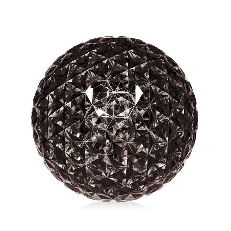 LAMPADA DA TAVOLO PLANET, 9386 - KARTELL La Kartell Planet, progettata da Tokujin Yoshioka, è una collezione completa di lampade che comprende sospensioni, lampade da tavolo basse e modelli con struttura in metallo. Ciò che le rende particolari è la forma leggermente ovoidale del diffusore, che è trasparente e presenta una superficie sfaccettata sia all'interno che all'esterno. Questa caratteristica crea un affascinante gioco di riflessi luminosi. Materiale Struttura: Tecnopolimero termoplastico trasparente o colorato in massa Dimensioni Altezza: 27 cm Diametro: 33 cm Peso unitario: 2,4 kg