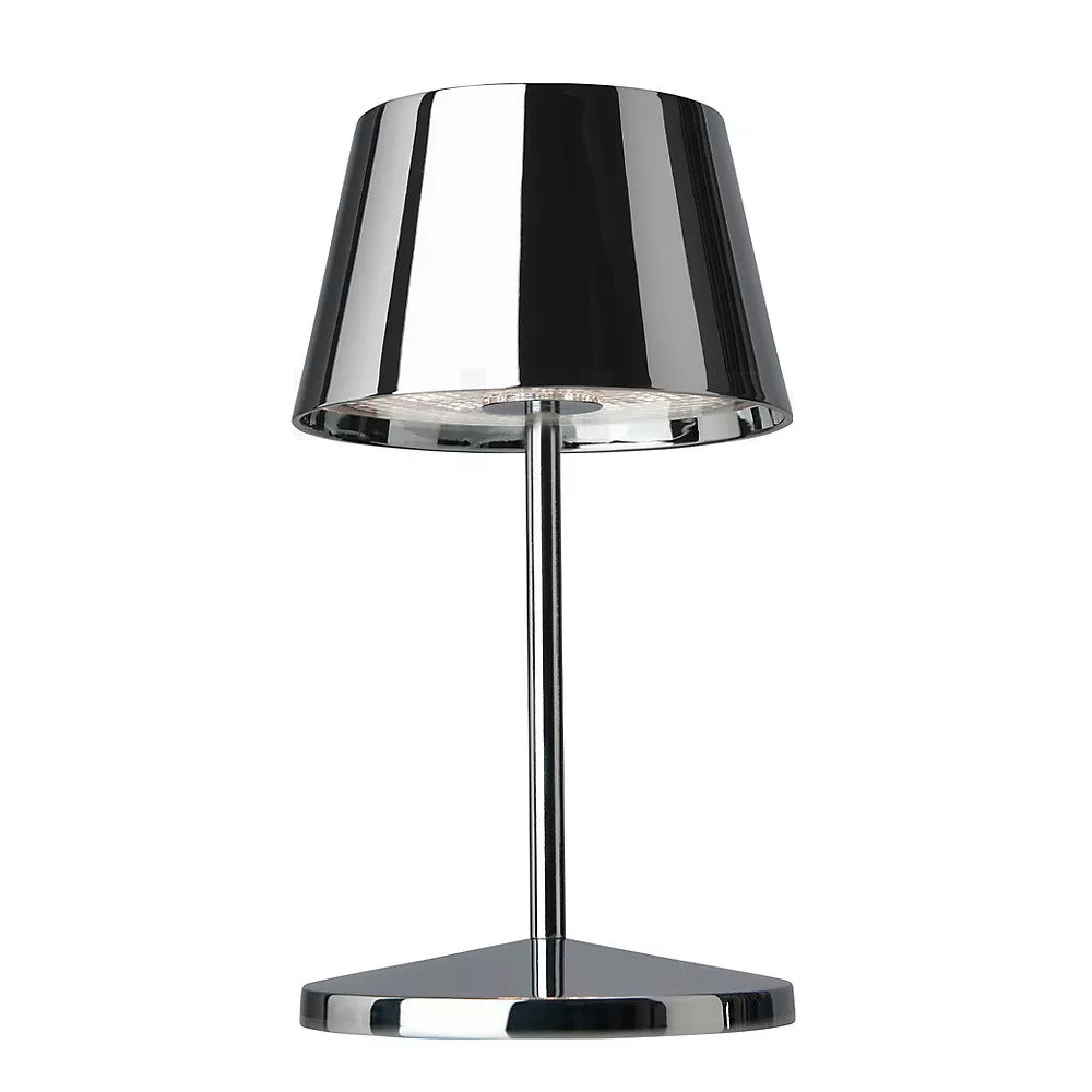 LAMPADA DA TAVOLO CROMATA, "SEOUL", VB96873 - VILLEROY & BOCH con SOMPEX Lampada da tavolo senza fili in alluminio. Adatta ad ambienti interni ed esterni. Funzionamento a batteria. Durata totale della luce: circa 24 ore. Tempo di ricarica: circa 6 ore. Con stazione di ricarica e con temperatura di colore variabile da bianco freddo a bianco caldo. Misure: Altezza 20 cm, diametro 10 cm, Grado di protezione IP65 (adatto all'uso all'esterno) LED da 3,3 W.
