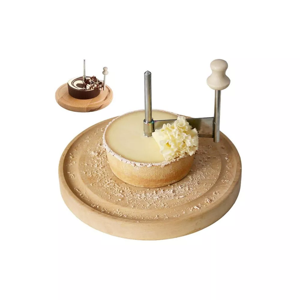 Grattugia formaggio rotatoria Materiale (grattugia): acciaio inox; base in legno Materiale (cloche): plastica Misura (grattugia): d. 22 cm - h. 16 cm - 250 gr Misura (cloche): d. 15,5 cm - h. 11 cm