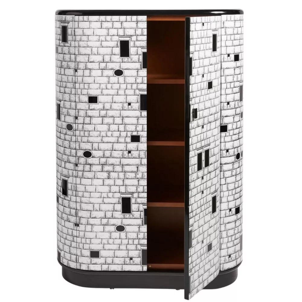 Il mobile contenitore Architettura di Fornasetti è un’icona senza tempo, caratterizzata da linee smussate ed eleganti. Realizzato in metallo, legno e MDF serigrafato e laccato a mano, è decorato con una scenografica facciata architettonica che lo rende un complemento d’arredo tanto funzionale quanto artistico. Le mensole interne, removibili e regolabili in altezza, garantiscono massima praticità. Ogni esemplare, frutto della sapiente artigianalità dell’Atelier, è unico e pensato per impreziosire con sofisticata eleganza ogni ambiente.