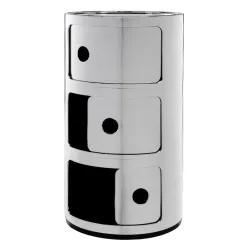 Il celebre Componibile di Kartell, icona del design dal 1967, si veste di nuove finiture metalliche per un effetto luminoso e sofisticato. Realizzato in ABS metallizzato, unisce la praticità modulare a un’estetica contemporanea e di grande impatto visivo. Disponibile nelle varianti a due o tre elementi, è perfetto per aggiungere un tocco di eleganza a qualsiasi ambiente, dalla zona giorno alla camera da letto.