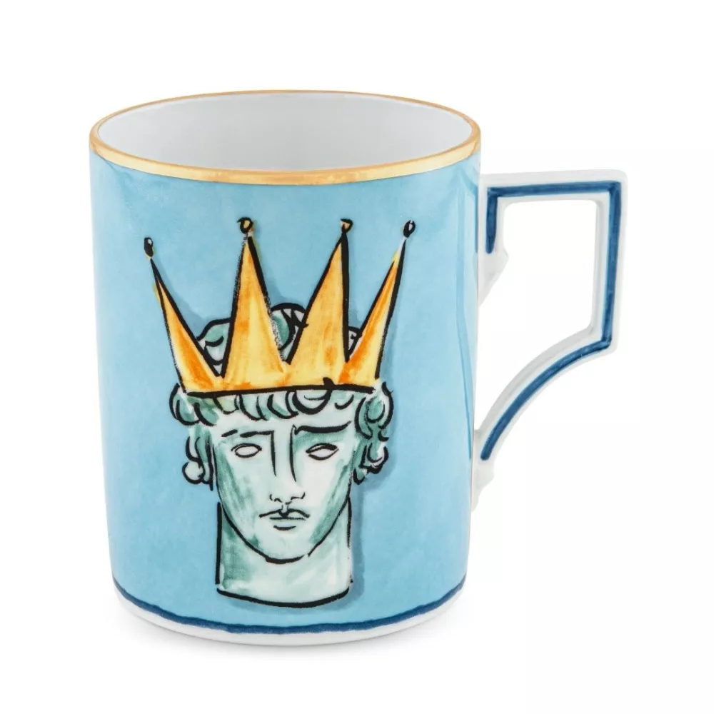Un'armonia di forme fluide e tonalità ispirate al mondo classico: questa mug in porcellana celebra la visione immaginifica di Luke Edward Hall. Il bordo decorato con onde color azzurro cielo richiama i paesaggi costieri mediterranei, mentre la forma raffinata la rende perfetta per tè, caffè o momenti di pausa. Racchiusa in un'elegante box, è il regalo perfetto per chi ama design e poesia.