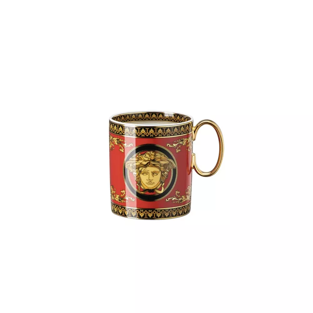 MUG MEDUSA VERSACE, 19335-409605-15505 - VERSACE Rosenthal incontra Versace presenta la decorazione senza tempo Medusa Red in una nuova edizione moderna che segna il 30° anniversario della collaborazione tra Versace e Rosenthal. I colori rosso brillante, oro e nero scorrono attraverso questo decoro classico e ne evidenziano il punto focale: una testa di Medusa tonalità oro. Circondata da dettagli barocchi a filigrana, l'iconico simbolo adorna nuovi piatti e ciotole di varie dimensioni, una piccola teiera e tazze, dando alla linea un'elegante finitura. Capacità della tazza: 0,30 L.