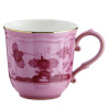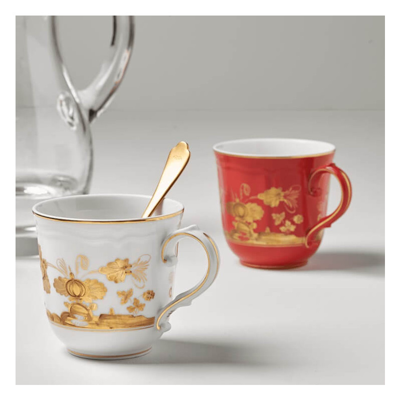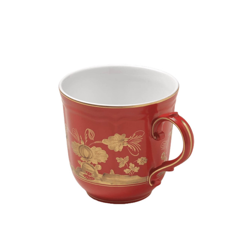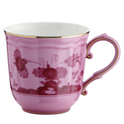 La Mug Oriente Italiano di Richard Ginori è un viaggio in un giardino immaginario orientale, dove il motivo del Garofano, tipico delle ceramiche di Faenza, si fonde con l’eleganza delle linee della storica collezione Antico Doccia. Decorata a mano con colori vivaci ed esplosivi, questa creazione trasforma la porcellana in un capolavoro di raffinatezza e stile italiano, perfetto per arricchire ogni momento di degustazione.