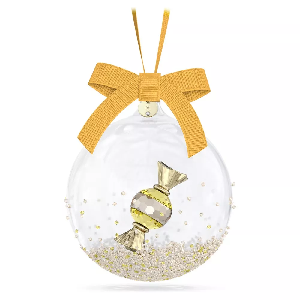 Collezione: Holiday Cheers Dulcis Dimensione: 10 x 8 x 8 cm Designer: Michele Blasilli Materiale: Cristalli, Poliestere, Metallo finitura tono dorato champagne, Vetro Colore: Verde / Giallo