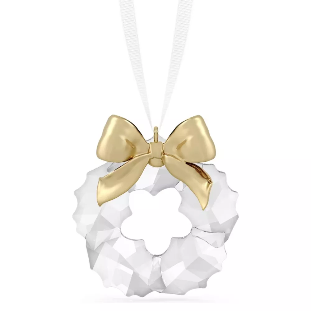 La decorazione ghirlanda Holiday Magic di Swarovski è un raffinato simbolo di eleganza festiva. Realizzata con 108 sfaccettature cristalline che riflettono la luce e impreziosita da un fiocco in metallo color oro champagne, dona un tocco luminoso e sofisticato a qualsiasi ambiente. Sospesa a un nastro in gros-grain bianco, questa creazione è perfetta per evocare la magia delle feste con stile. Oggetto decorativo, non adatto a bambini di età inferiore ai 15 anni.