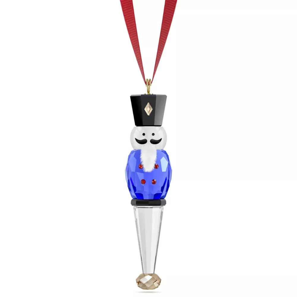 Ispirata a uno dei personaggi più iconici del Natale, la decorazione Schiaccianoci Holiday Cheers di Swarovski sprigiona tutta la magia delle feste. Realizzato con 270 sfaccettature cristalline, lo schiaccianoci indossa un cappotto blu con bottoni rossi ed è arricchito da una barba in tessuto bianco. Appeso a un nastro in gros-grain rosso, è un elemento raffinato che unisce tradizione e stile, portando gioia e luminosità in ogni ambiente. Oggetto decorativo, non adatto a bambini di età inferiore ai 15 anni.