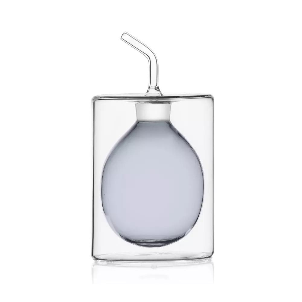 OLIERA 0.15 LT, CILINDRO GRIGIO, 09370073 - ICHENDORF MILANO Questa oliera in vetro dal doppiofondo Grigio presenta un design curato da Anna Perugini. Il materiale utilizzato è il vetro borosilicato, noto per la sua resistenza agli sbalzi termici e per il basso coefficiente di dilatazione. Ichendorf utilizza il vetro borosilicato soffiato, che rende il prodotto adatto per contenere liquidi caldi e lavabile in lavastoviglie. Grazie alla lavorazione speciale, il prodotto è resistente agli sbalzi termici e garantisce durata e resistenza. Ogni prodotto della Ichendorf Milano è sinonimo di alta qualità Made in Italy, design e resistenza. Misure: H 10,5 x ø 8 cm Capienza: 15 cl Materiale: Vetro Borosilicato