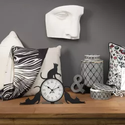 Un'elegante reinterpretazione del classico orologio da camino inglese, l’orologio da tavolo Cattitude firmato Arti & Mestieri aggiunge un tocco ironico e moderno all’arredamento. Due gatti stilizzati si allungano con grazia sulla struttura, creando un effetto visivo dinamico e raffinato, ideale per scrivanie, consolle o librerie.