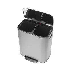 PATTUMIERA BO PEDAL BIN, 2X30 211461, ACCIAIO INOX SATINATO - BRABANTIA La pattumiera Bo unisce il design esclusivo alla facilità nel gestire la separazione dei rifiuti. E’ fornito di due secchi rimovibili per 2 tipologie di rifiuti. Aderisce perfettamente alla parete (salva-spazio!), la base antiscivolo – evita di graffiare il pavimento e rende stabile la pattumiera. Grazie alla particolare chiusura soft, il coperchio si chiude silenziosamente ed ha un funzionamento agevole. Matt steel finish, fingerprint proof SKU 211461 DIMENSIONI Capacità (lt.): 60 litri