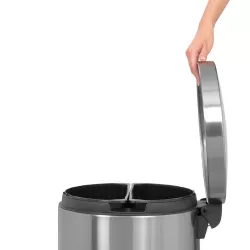 PATTUMIERA A PEDALE, 2 x 20 L, ACCIAIO SATINATO, 424229 - BRABANTIA Apertura a pedale con motion control Doppio secchio interno estraibile Ideale per raccolta differenziata, 2 secchi interni estraibili Cambio del sacchetto senza piegarsi, posizione rialzata del secchio Speciale rivestimento che evita le ditate e ne facilita la pulizia Base antiscivolo che non danneggia il pavimento SKU 424229 Peso 699 g Dimensioni prodotto 37 x 49 x 68,5 cm Diametro 37 cm Capacità 45 litri