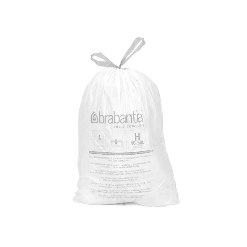 Confezione da 10 sacchetti litri 50 , codice H. Con laccetto di chiusura in confezione rotolo. SKU 246784