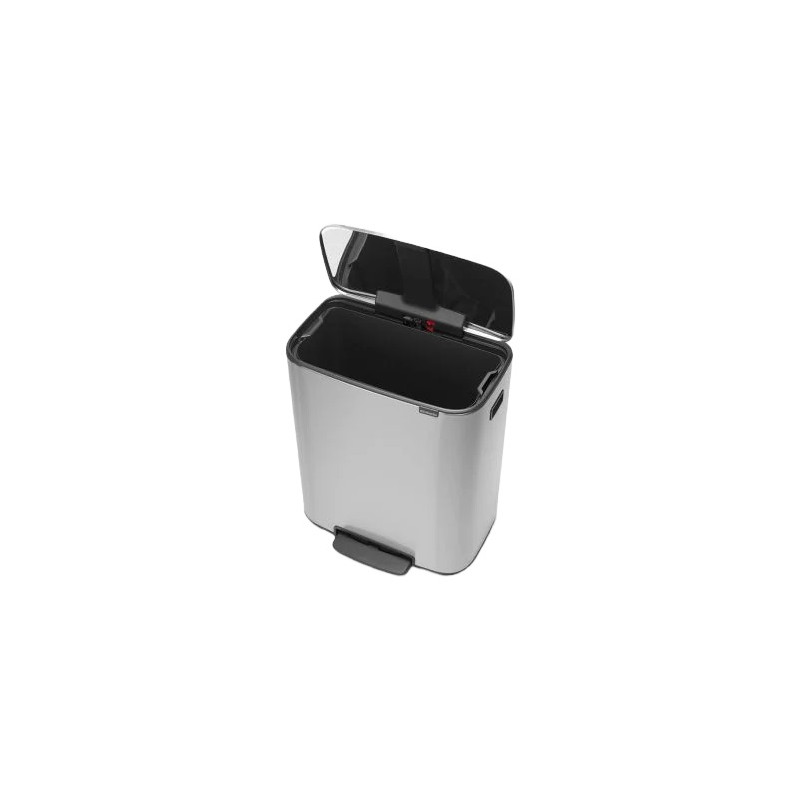 PATTUMIERA A PEDALE BO BIN, 60LT - BRABANTIA Pattumiera XXL 60 LT Coperchio con chiusura silenziosa, morbido funzionamento a pedale. Facile da pulire - secchio interno in plastica rimovibile. Antiscivolo, antigraffio - morbida base antisdrucciolo. Facile da spostare - due robuste maniglie integrate. Abbinamento perfetto - confezione campione di sacchetti per rifiuti Brabantia PerfectFit inclusa (codice M). Ecologico - Certificato Cradle-to-Cradle®, livello Bronzo. Una scelta più sostenibile - realizzata con il 44% di materiale riciclato, riciclabile al 97% dopo l'uso.