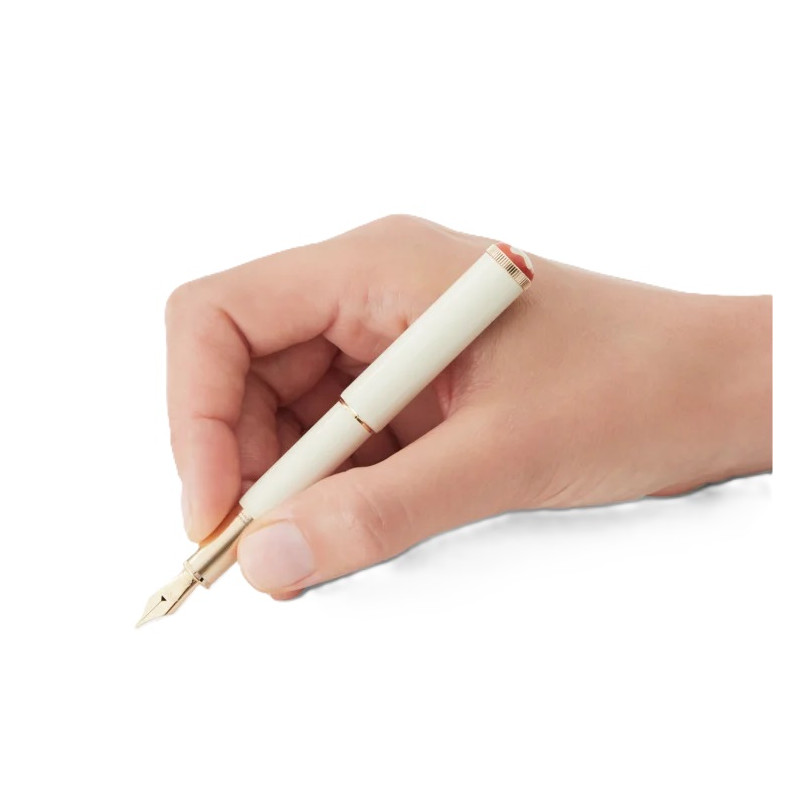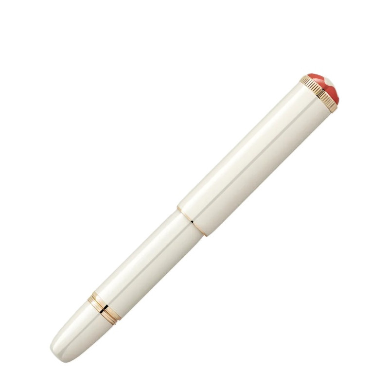 La Montblanc Heritage Collection Rouge et Noir “Baby” celebra lo spirito pionieristico e la ricca tradizione della Maison. Ispirandosi alle penne “Baby” degli anni ’20, Montblanc ha reinterpretato questo design rivoluzionario per l'epoca in chiave moderna. Il nome fa riferimento scherzosamente alle dimensioni ridotte di questo modello rispetto agli altri strumenti da scrittura Montblanc. Realizzata in pregiata lacca color avorio con dettagli finitura oro distintivo, è completata dall’emblema Montblanc in pregiata resina, circondato dalla tonalità corallo della collezione Rouge et Noir. Il pennino in oro massiccio Au585, lavorato a mano e con un disegno del Monte Bianco, esprime l'eleganza della Maison. Il termine "oro distintivo" descrive la tonalità luminosa di oro giallo, simbolo degli strumenti da scrittura Montblanc.