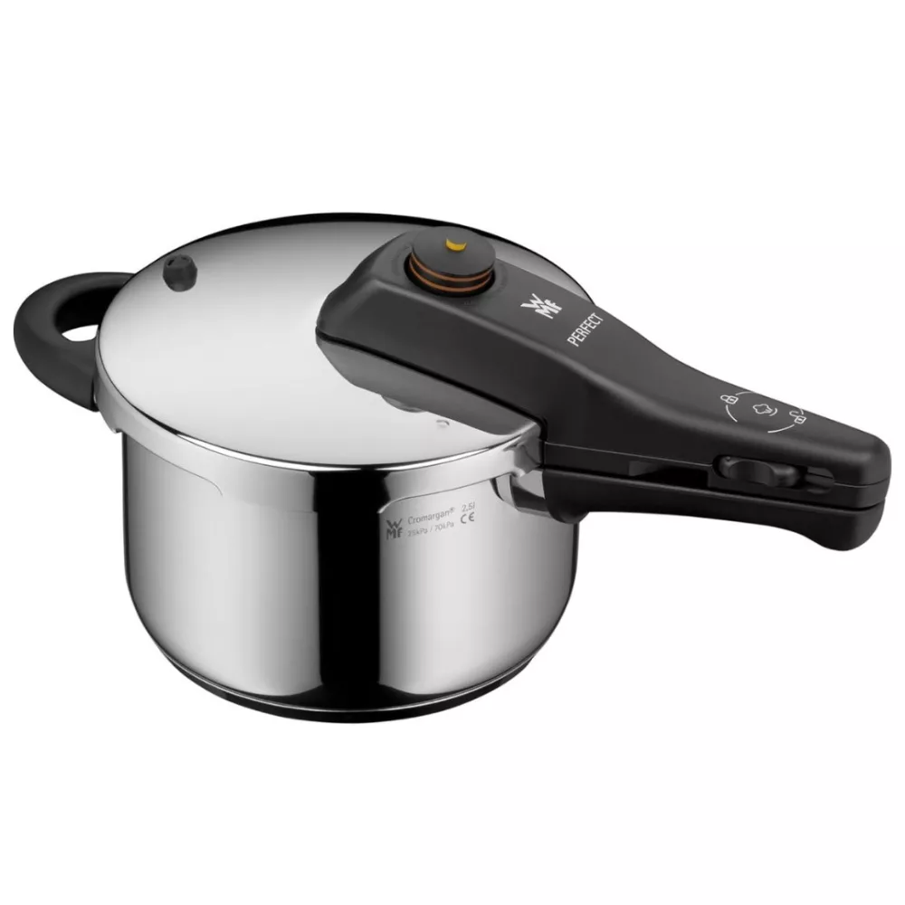 Perfetta per chi cerca una cucina veloce, sana e gustosa, la pentola a pressione Perfect One Pot da 2,5L di WMF consente di preparare piatti deliziosi in un batter d’occhio. Cotture fino al 70% più rapide rispetto ai metodi tradizionali, con un’eccezionale conservazione delle vitamine. Un 3 in 1: pentola classica, a vapore e a pressione, ideale per un’ampia varietà di ricette. La struttura in acciaio inox Cromargan® garantisce massima durabilità, ed è dotata di 7 livelli di sicurezza e rilascio vapore controllato. Compatibile con tutti i piani cottura, anche a induzione, e lavabile in lavastoviglie.