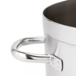 La pentola alta della Serie 1100 Grand Gourmet Paderno e progettata per garantire prestazioni professionali e affidabilita costante. Realizzata in acciaio inox con finitura satinata interna ed esterna e bordo lucido, unisce robustezza tecnica ed eleganza funzionale. Il fondo termodiffusore sandwich inox alluminio inox assicura una distribuzione uniforme del calore e un utilizzo efficiente dell energia termica. I due manici tubolari ergonomici, resistenti al calore, e il bordo rinforzato completano una struttura pensata per un uso intensivo, ideale per ogni tecnica di cottura in ambito domestico evoluto e professionale.