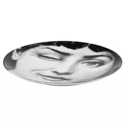 Le reinterpretazioni del volto di Lina Cavalieri da parte di Fornasetti danno vita all’iconica collezione Tema e Variazioni, trasformando questo piatto in porcellana decorata a mano in un oggetto imperdibile per collezionisti e amanti dell’arte. Può essere esibito come piatto da parete grazie ai fori predisposti sul retro o utilizzato come elemento ornamentale per la tavola. Ogni leggera differenza testimonia la realizzazione artigianale, rendendo ogni creazione unica e preziosa.