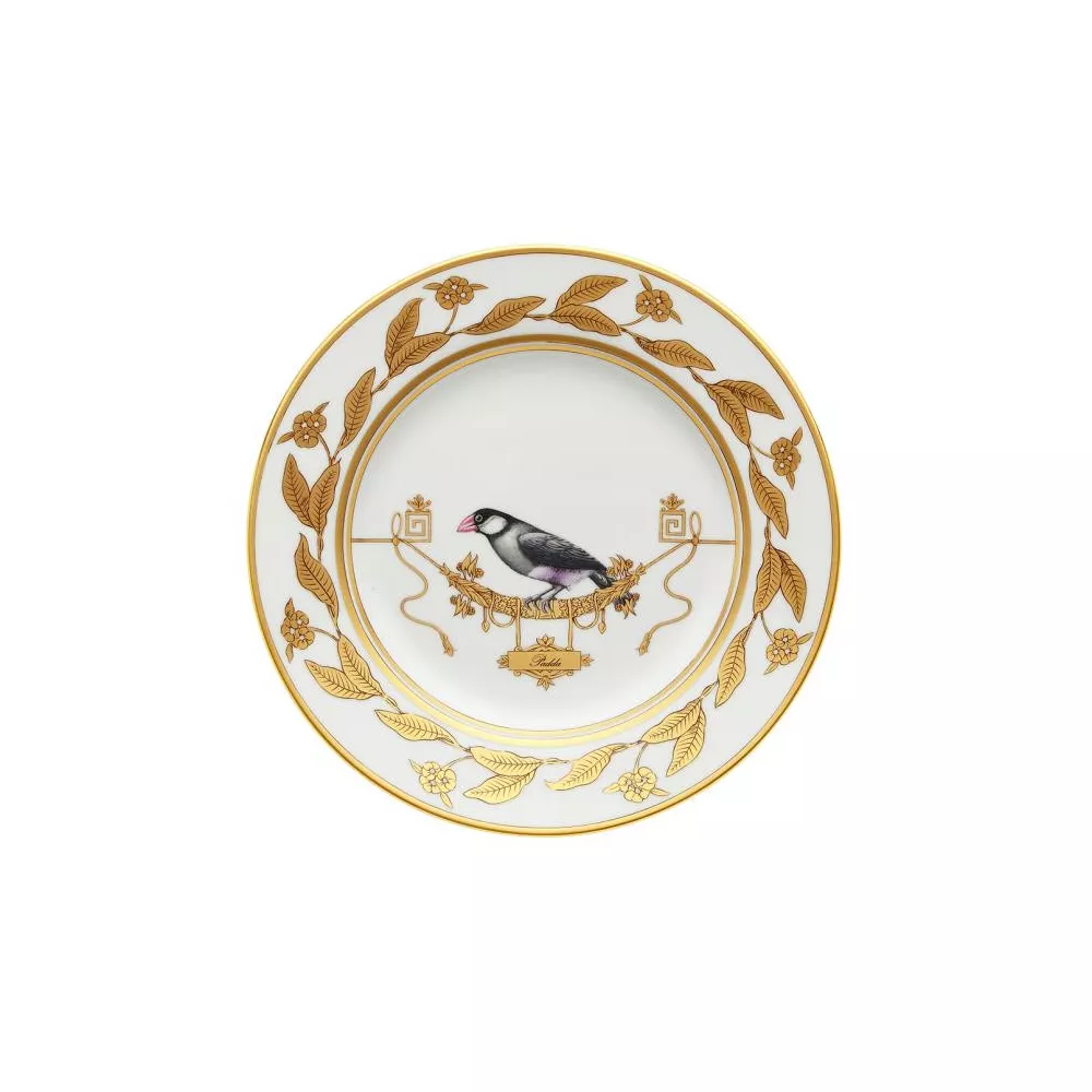 Richard Ginori Voliere Piatto Frutta Forma: Impero Dimensioni: cm 22 Materiale: porcellana, finiture in oro Decorato a mano
