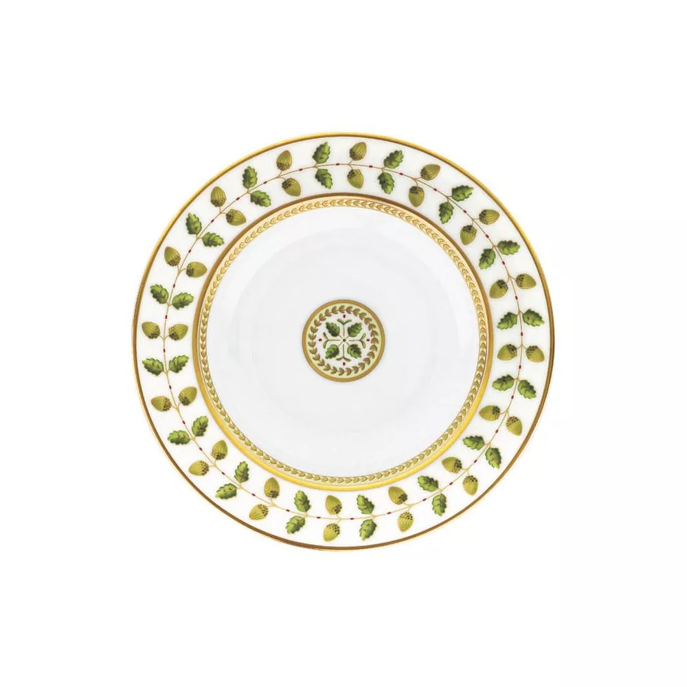 Piatto fondo cm 23, finiture oro - Costance offre tutta la raffinatezza dello stile Impero. Ghiande, quercia e foglie di alloro - i simboli di forza, longevità e pace.