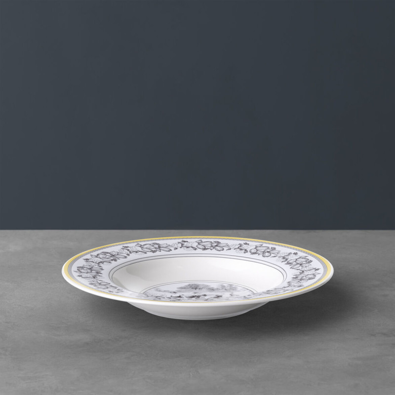 PIATTO FONDO 24 CM, AUDUN FERME 10-1067-2700 - VILLEROY & BOCH La collezione Audun presenta decorazioni raffinate ispirate alle incisioni su rame, raffiguranti paesaggi dettagliati, insieme a delicati disegni floreali nei toni eleganti del giallo e del grigio. Grazie all'utilizzo del servizio in Premium Porcelain, è possibile creare una tavola dal fascino classico e rustico. Il piatto segnaposto Audun, con il suo design senza tempo, aggiunge un tocco speciale ad ogni tavola e può essere utilizzato anche come piatto per torte e crostate. Vivete ogni giorno l'esperienza di gustare il cibo con stile. Piatto fondo 24 cm Collezione: Audun Ferme Materiale: porcellana Premium Lavabile in lavastoviglie Adatto per il microonde Codice: 1010672700 SCOPRI TUTTA LA COLLEZIONE: Audun - Villeroy & Boch