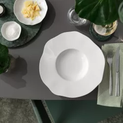 Il Piatto Pasta Pura 10-4466-2790 di Villeroy and Boch esprime un’eleganza contemporanea capace di valorizzare ogni portata. Realizzato in porcellana premium, si distingue per la texture setosa e il bianco assoluto che esalta le preparazioni come su una tela, dalla pasta gourmet a creazioni creative. Le linee fluide evocano la leggerezza di una foglia di loto che scivola sull’acqua, dando vita a una silhouette armoniosa e naturale. Con il suo diametro di 28 cm, è ideale per primi piatti e composizioni scenografiche, completando la mise en place con equilibrio e diventando anche una idea regalo elegante per chi ama il design essenziale.