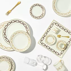 PIATTO FONDO 24 CM, CATENE IMPERO - RICHARD GINORI Catene è una collezione di prodotti per la tavola, tra cui articoli come tazze, piatti, tè e caffè, insieme a decorazioni per la casa. Questa collezione è disponibile in quattro affascinanti varianti di colore: Nero, Smeraldo, Zaffiro e Scarlatto. I bellissimi disegni che caratterizzano Catene sono stati ereditati dal rinomato Gio Ponti, che fu il direttore artistico durante la prima metà del secolo scorso per Ginori. La forma storica di questa collezione è l'Impero, che accoglie in modo armonioso l'estetica sofisticata di Catene. Per donare una lucentezza e un tocco di raffinatezza ulteriori, Ginori ha applicato una delicata finitura in oro puro che impreziosisce piatti, tazze, vasi e tutte le raffinate porcellane della collezione. Non adatto al microonde Usare in lavastoviglie solo con cicli delicati Forma: Impero Materiale: Porcellana Made in Italy SCOPRI TUTTA LA COLLEZIONE: Catene Impero Ginori