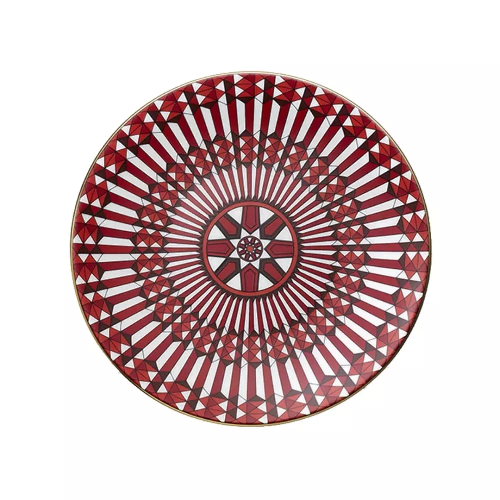 Il piatto pane Arcadia Rosso 2817035 di Baccarat aggiunge un raffinato dettaglio di eleganza alla tavola. Realizzato in porcellana, questo piatto esalta il bianco luminoso con il celebre rosso Baccarat e preziosi tocchi dorati che valorizzano il motivo Arcadia. Il decoro si ispira alle finestre ad arco della Manifattura Baccarat, simbolo del luogo dove da generazioni artigiani appassionati danno vita a creazioni straordinarie. Perfetto per completare una mise en place sofisticata e per accompagnare pane, piccoli assaggi o dessert, si abbina armoniosamente alle creazioni in cristallo della Maison e rappresenta anche una idea regalo elegante e ricercata.
